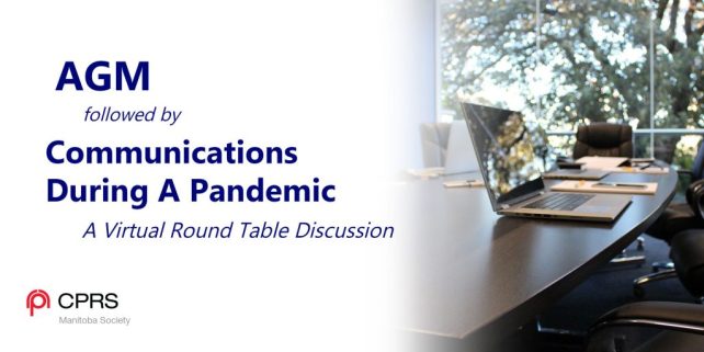 Please join your fellow CPRS Manitoba members as we wrap-up of the year that was, look forward to the year ahead, share some exciting news about our Manitoba Communicator of the Year Awards, and wrap it all up with our last Professional Development event of the season – Communications During A Pandemic: A Virtual Round Table Discussion.